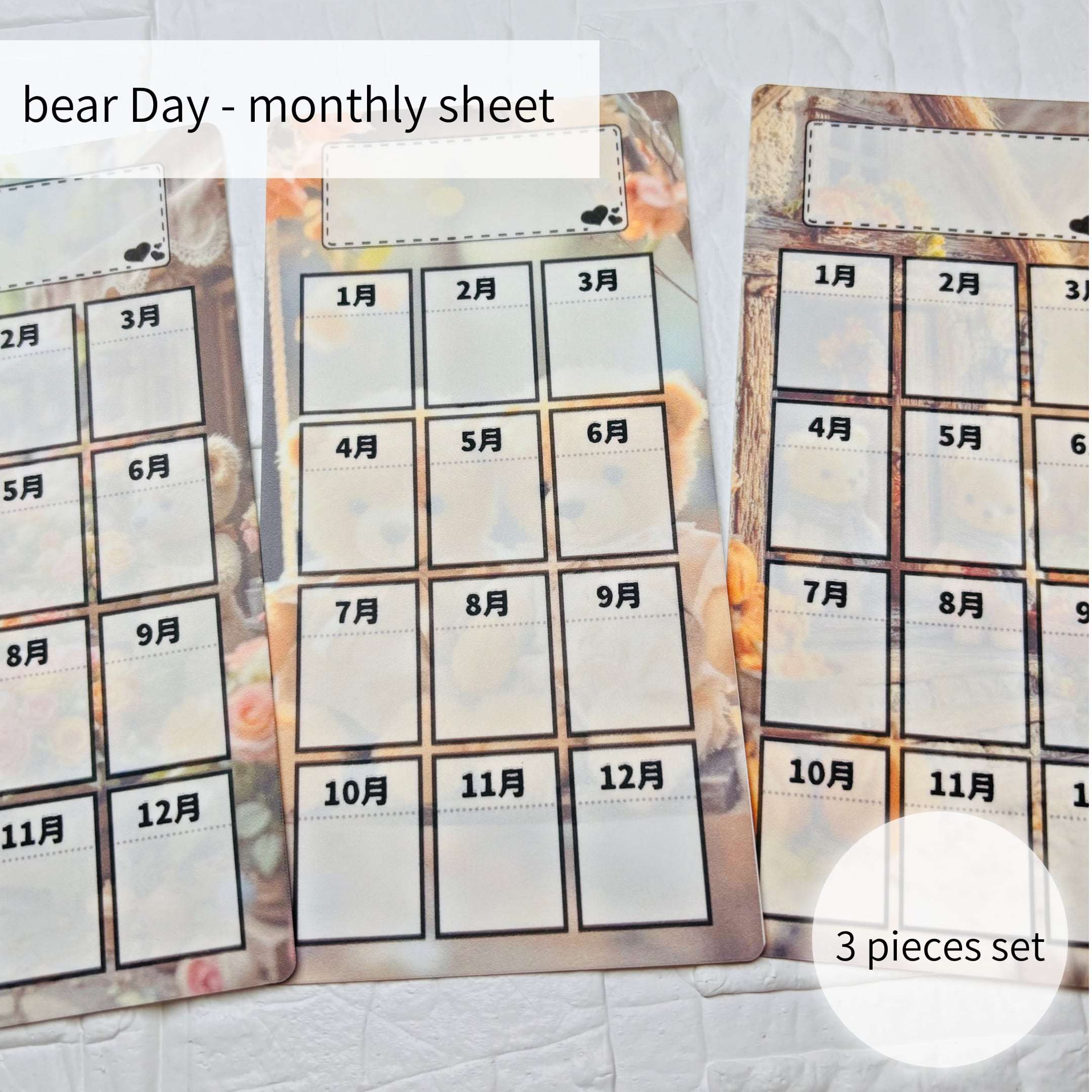 Bear Day - monthly sheet 3 pieces set