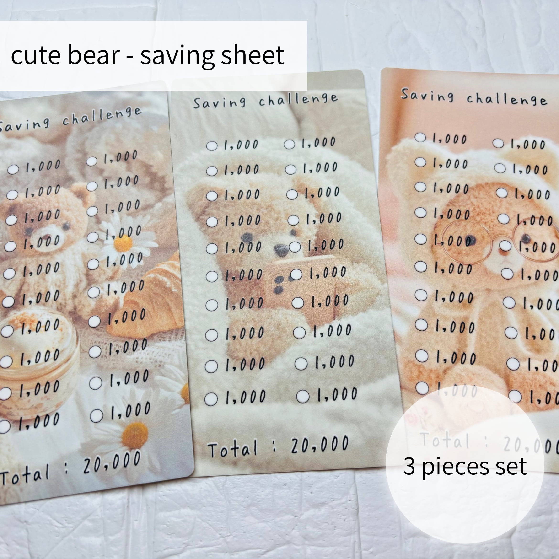 Cute bear - saving sheet 3 pieces set
